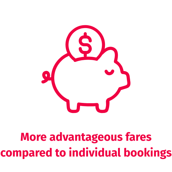 Traveling in a group? With AnimaWings, you benefit from special fares and flexible conditions for group bookings, starting from a minimum of 10 passengers in Economy or 5 passengers in Business. Whether you're planning a holiday, an event, or a corporate trip, our team will prepare a personalized offer tailored to your needs.