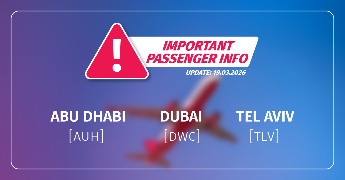 In the context of the ongoing conflict situation in the Middle East and in the context of the extended closure of the airspaces, AnimaWings has decided to suspend flights to Dubai (DWC), Tel Aviv (TLV) and Abu Dhabi (AUH) until 08 March 2026 (inclusive).